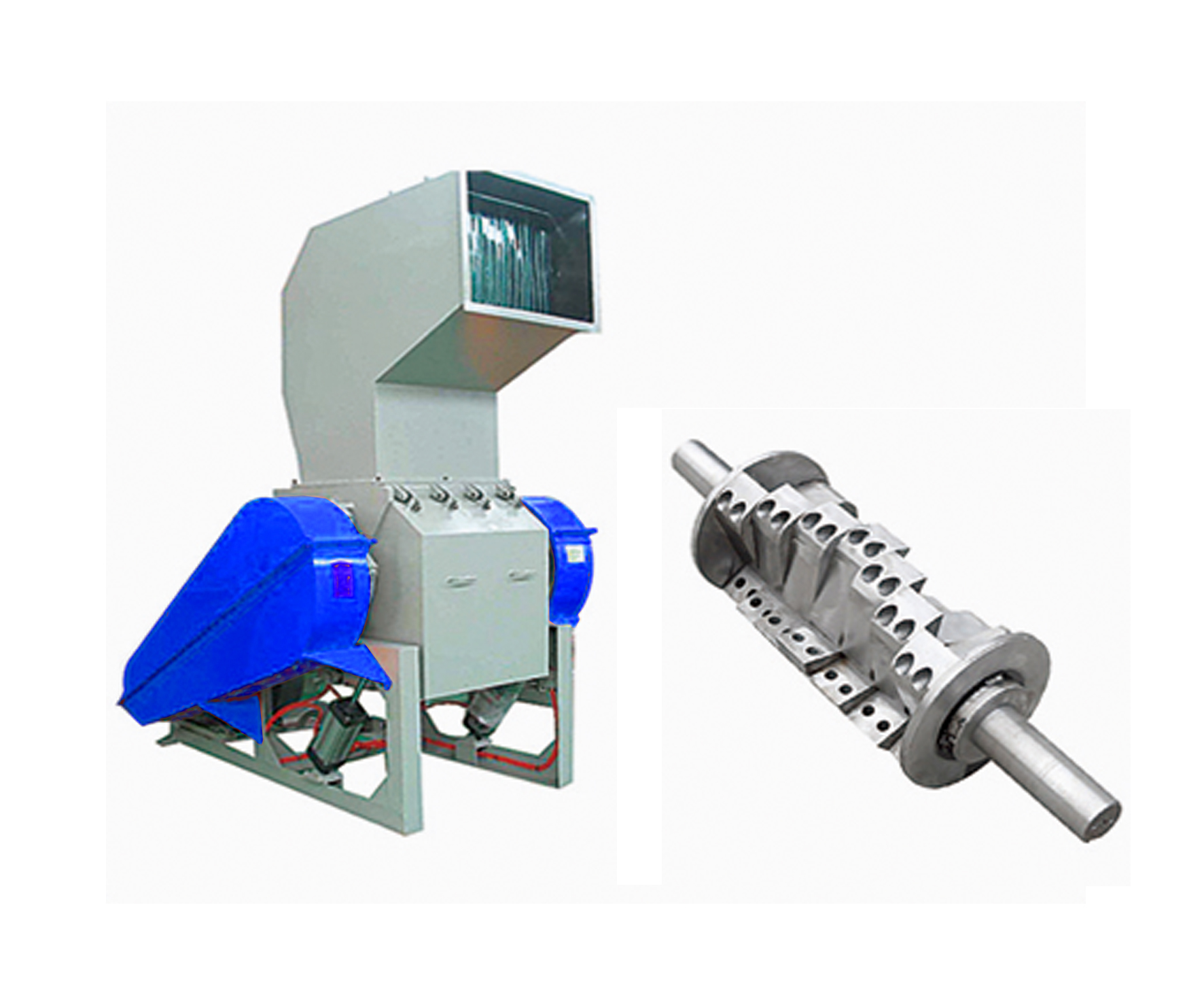 特點:兩根刀軸對向旋轉,破碎力度大,可處理混合塑料或厚壁制品。
