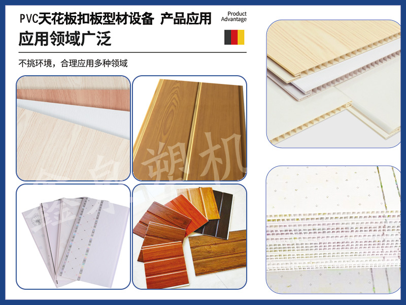 PVC天花板扣板型材生產(chǎn)線主要以PVC、UPVC為原料,生產(chǎn)天花板及裝飾類扣板型材等。